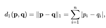 그냥 벡터 p, q 의 각 원소들의 차이에다가 절대값 입혀서 다 더한것
