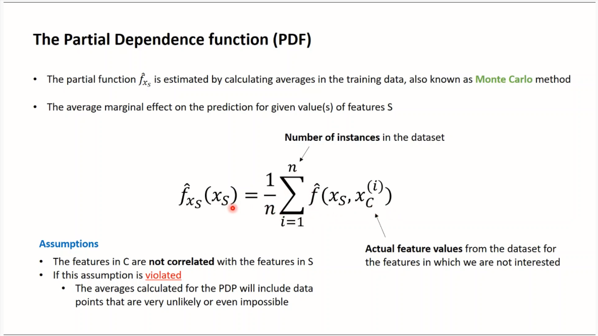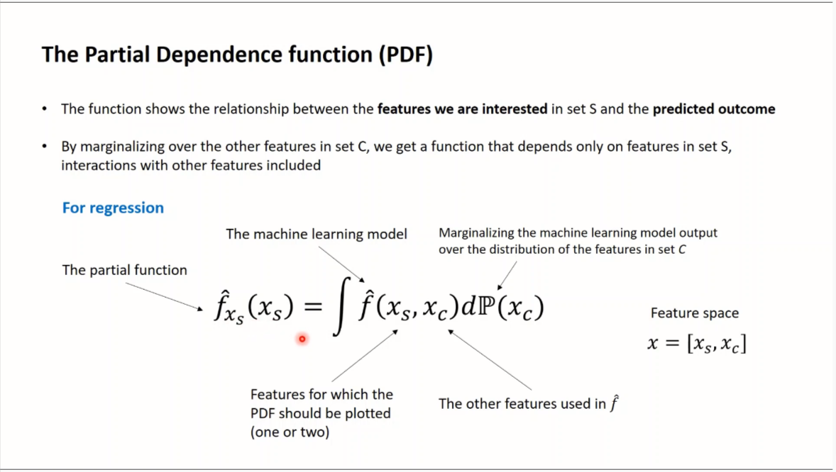 머신러닝에서 그리는 pdp는 독립변수 Xs, Xc 2개가 있을 때 Xc에 대해서 다 더한 후 평균을 낸 값으로 구한다.