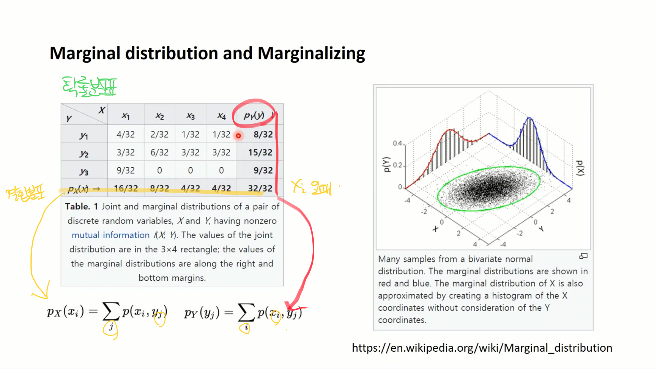 pdp개념을 알려면 우선 marginal 분포를 알아야한다. 그냥 수리통계학에서 배우는 결합분포이다.